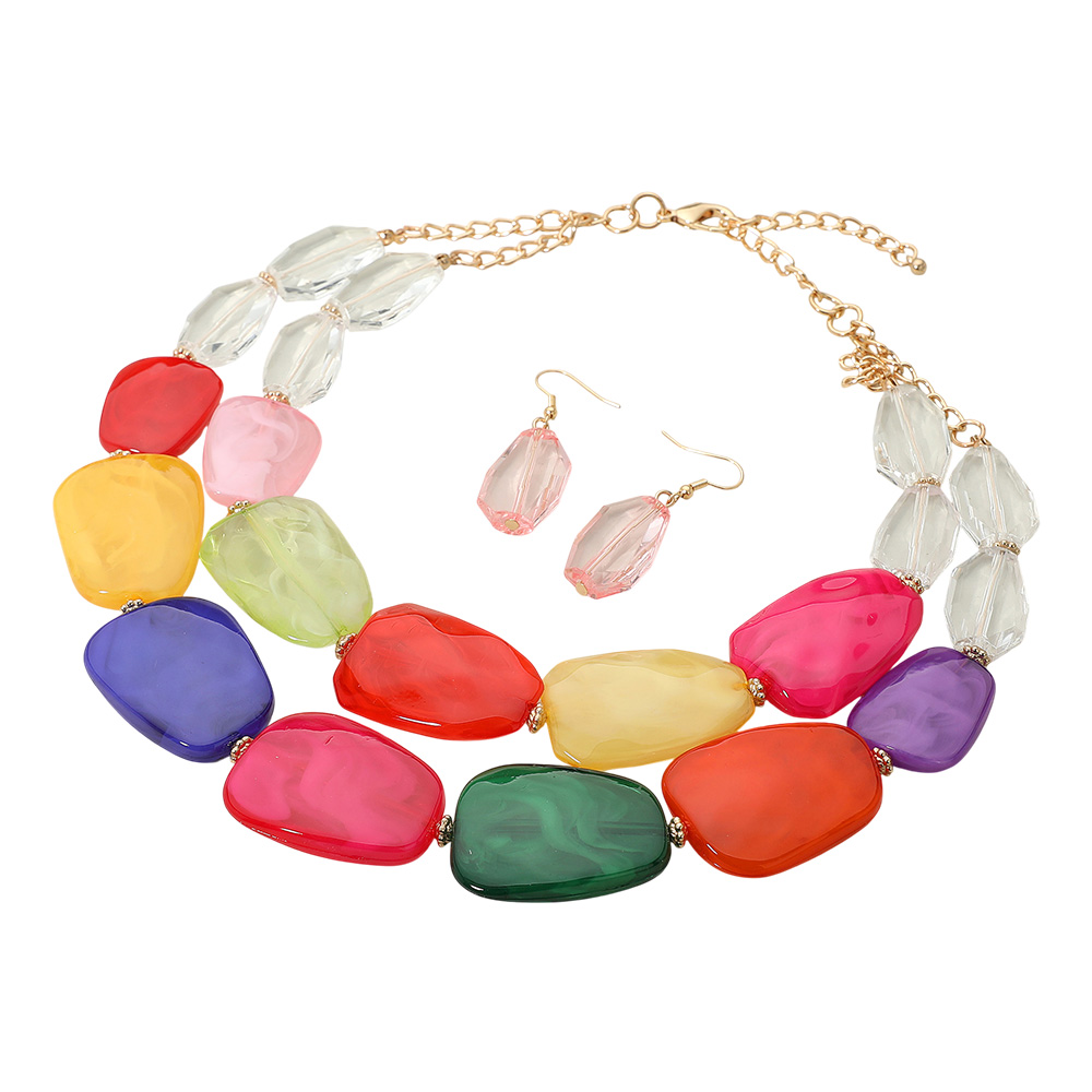 Chunky Abstract Resin Beaded Layered Statement Necklace