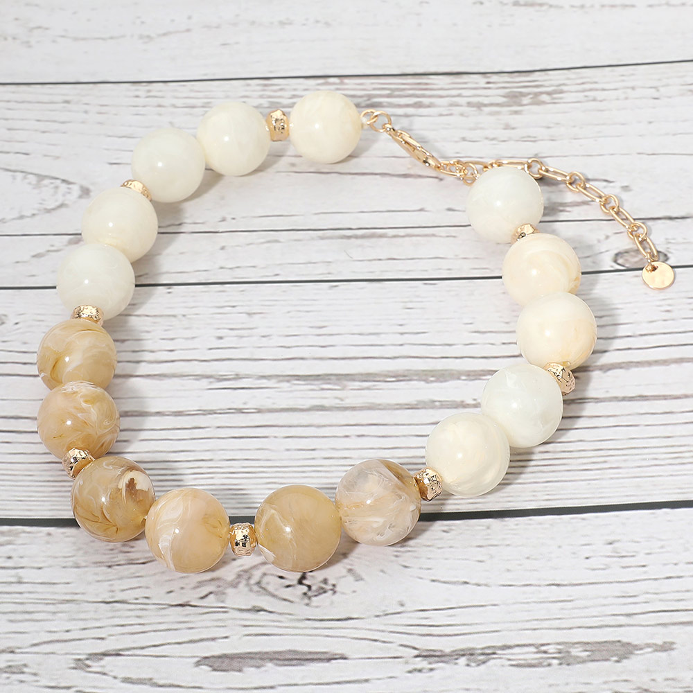 Chunky Marbled Resin Ball Beaded Statement Necklace