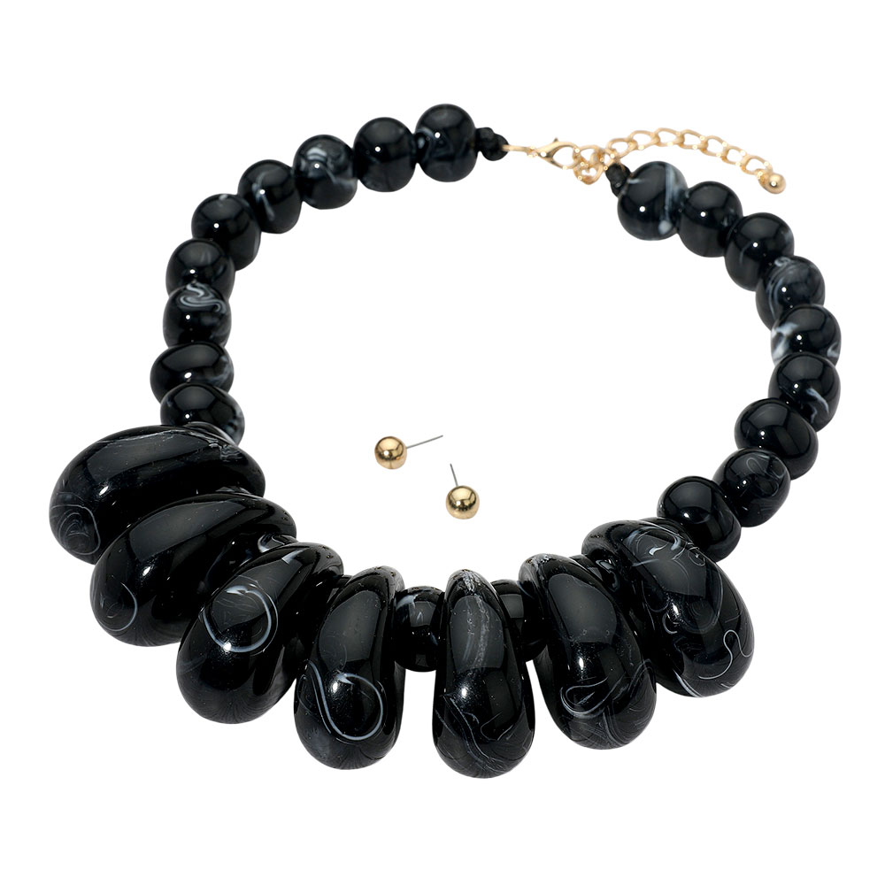 Chunky Marbled Resin Pebble Beaded Statement Necklace Chunky Marbled Resin Pebble Beaded Statement Necklace