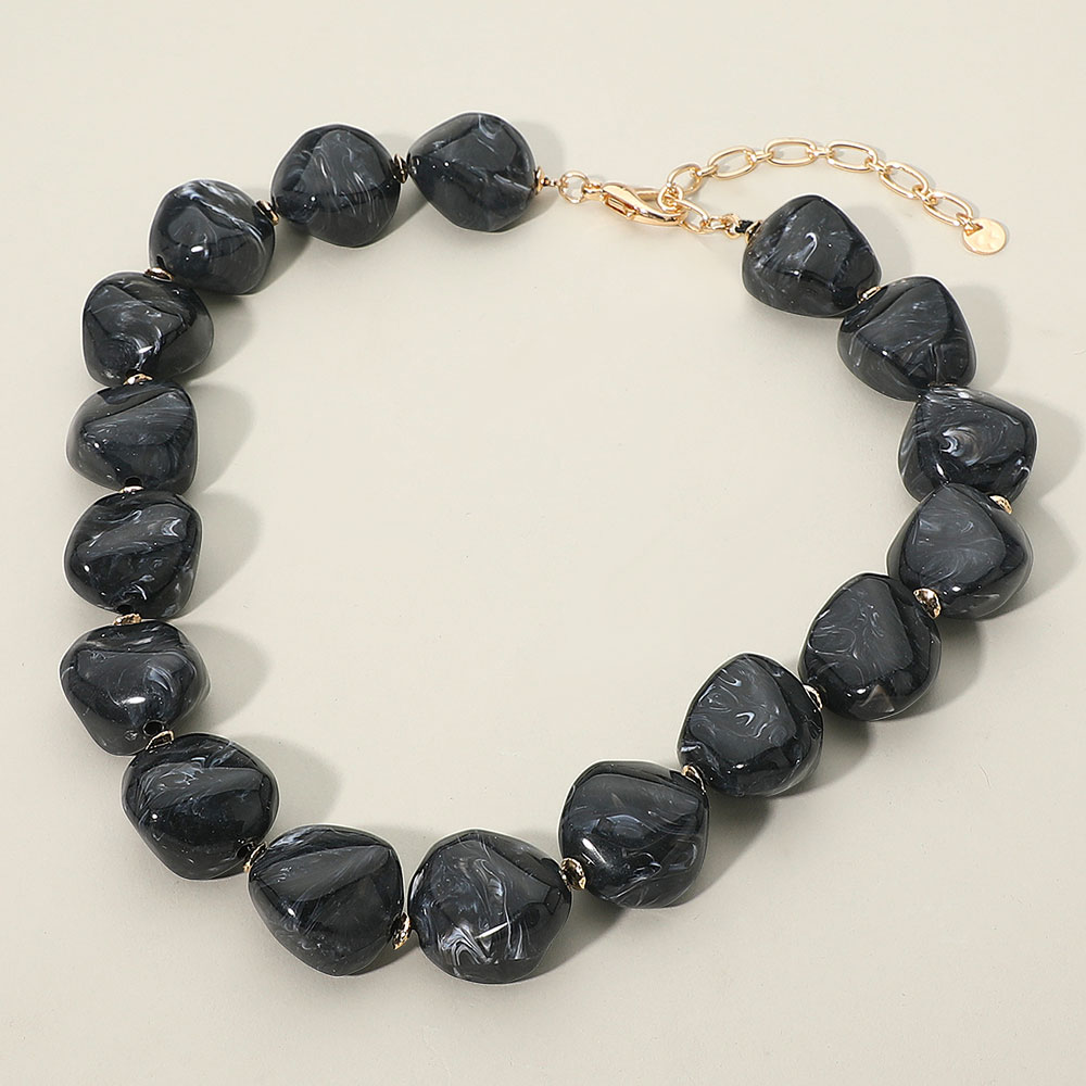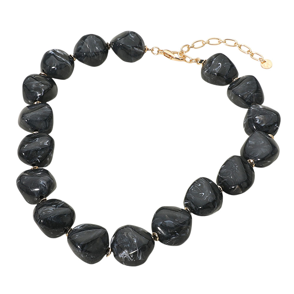 Details • Necklace Size : 19" + 4" L • Decor Size : 1" L • Contemporary pebble bead bracelet featuring smooth marbled beads in a chic, organic shape. Designed with an adjustable chain for a perfect fit, this stylish bracelet adds a modern touch to both casual and elegant looks, making it a versatile jewelry essential. • Lead and Nickel Compliant