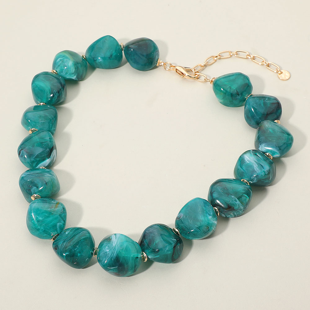 Chunky Marbled Resin Pebble Beaded Statement Necklace
