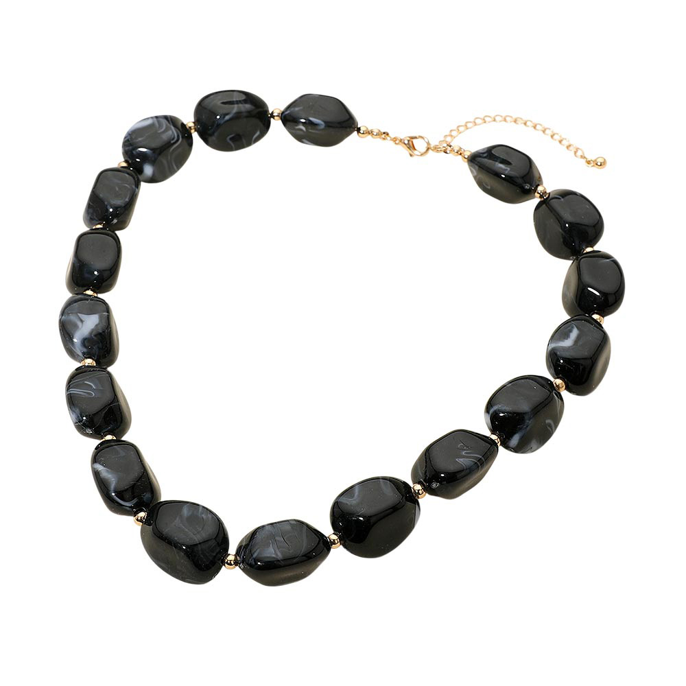 Details • Necklace Size : 18" + 3" L • Decor Size : 0.75" L • This chunky statement necklace features smooth marbled beads that add bold style to any outfit. Its unique texture and striking design make it perfect for elevating everyday looks or complementing special occasion wear, offering a fashionable accent that stands out with modern charm. • Lead and Nickel Compliant