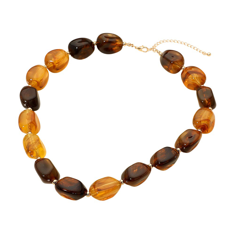 Chunky Marbled Resin Pebble Beaded Statement Necklace Chunky Marbled Resin Pebble Beaded Statement Necklace