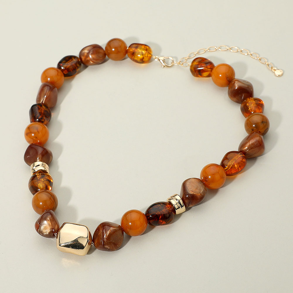 Chunky Metal Accent Resin Pebble Beaded Statement Necklace
