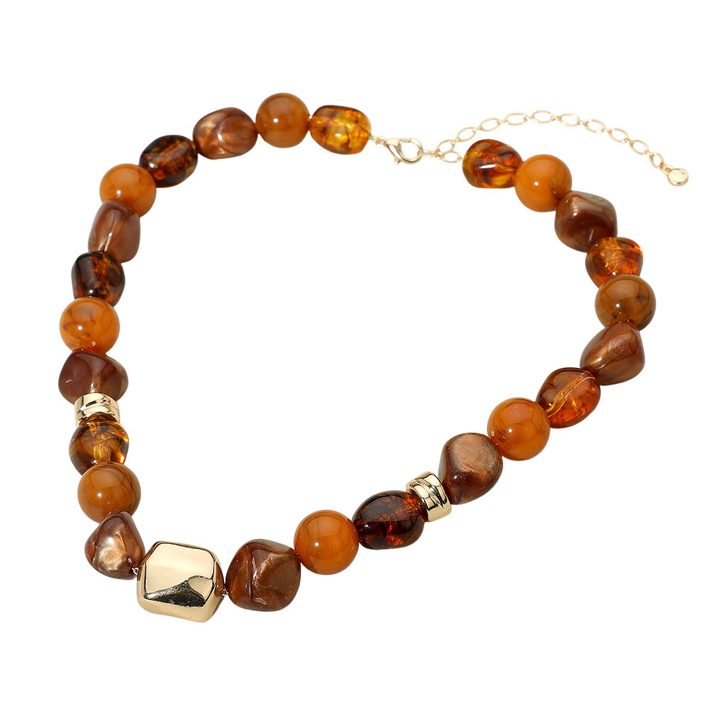 Chunky Metal Accent Resin Pebble Beaded Statement Necklace Chunky Metal Accent Resin Pebble Beaded Statement Necklace