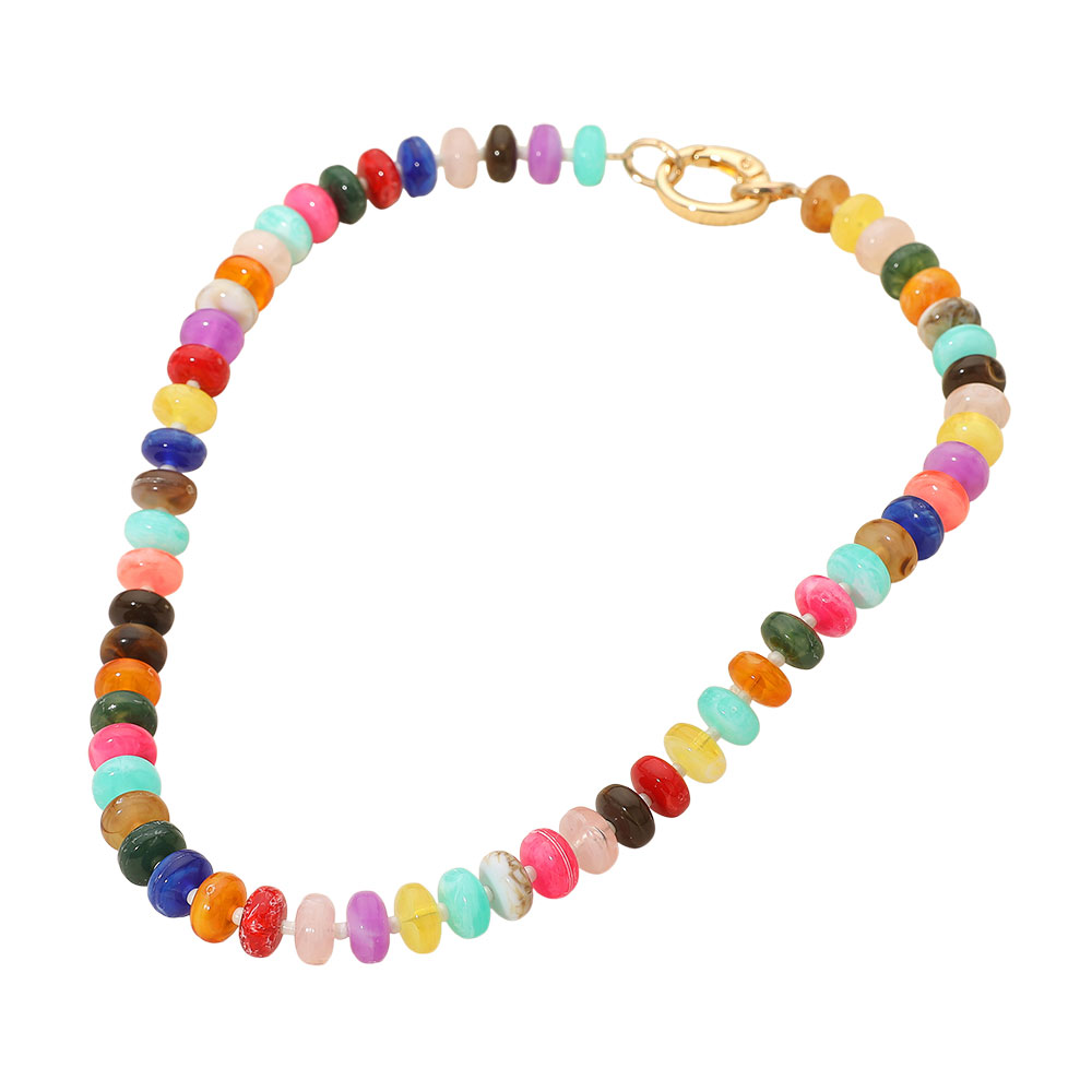 Chunky Multicolor Resin Flat Disc Beaded Necklace