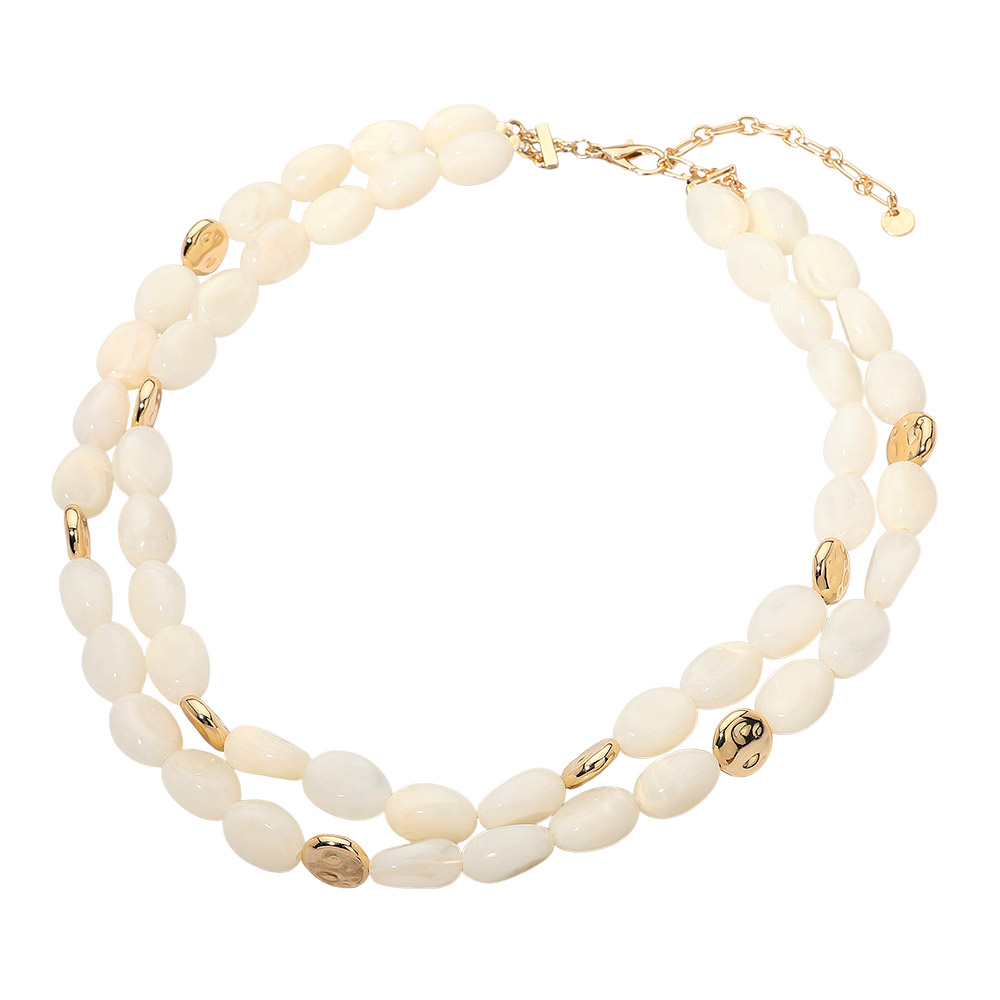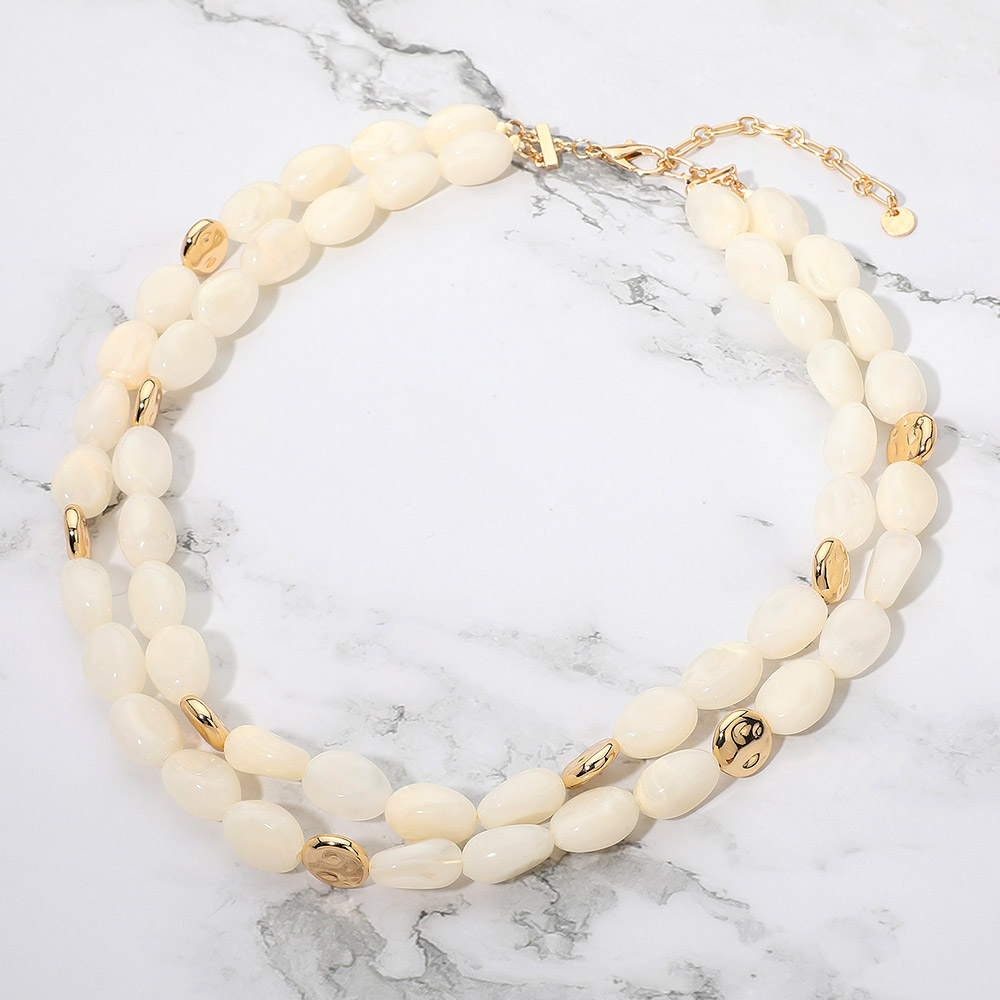 Chunky Oval Resin Pebble Beaded Layered Statement Necklace Chunky Oval Resin Pebble Beaded Layered Statement Necklace