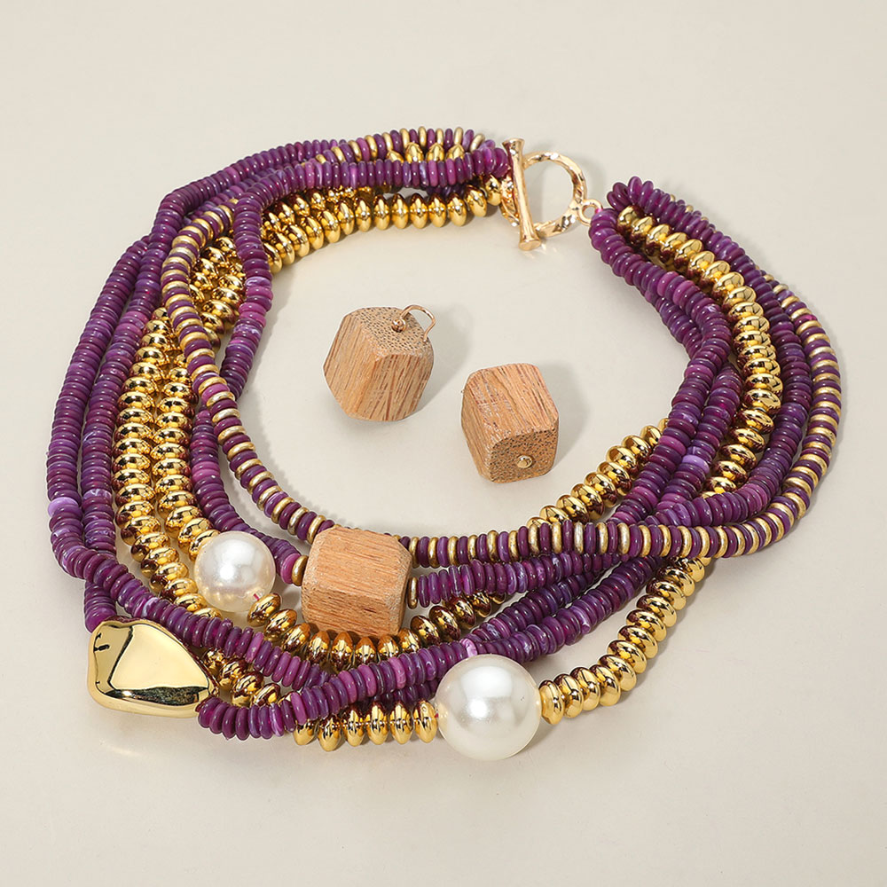 Chunky Pearl Wooden Cube Metal Pebble Accent Multi Disc Beaded Layered Toggle Statement Necklace Chunky Pearl Wooden Cube Metal Pebble Accent Multi Disc Beaded Layered Toggle Statement Necklace