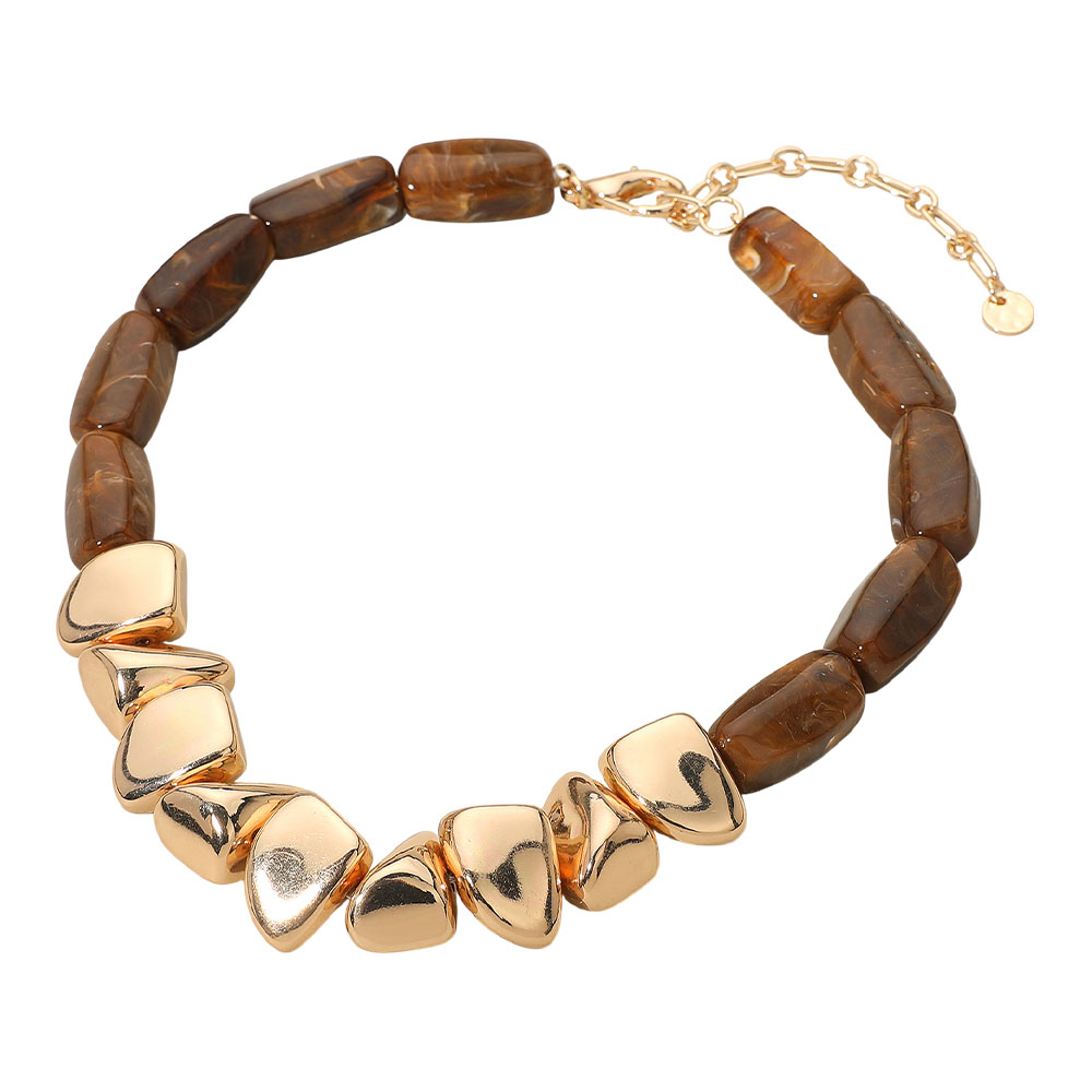 Chunky Polished Metal Marbled Resin Pebble Beaded Statement Necklace Chunky Polished Metal Marbled Resin Pebble Beaded Statement Necklace