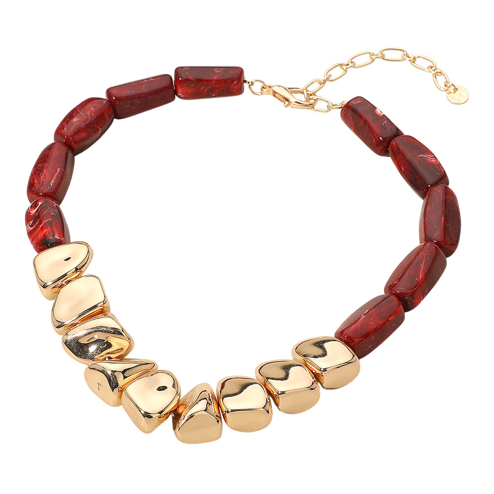 Chunky Polished Metal Marbled Resin Pebble Beaded Statement Necklace