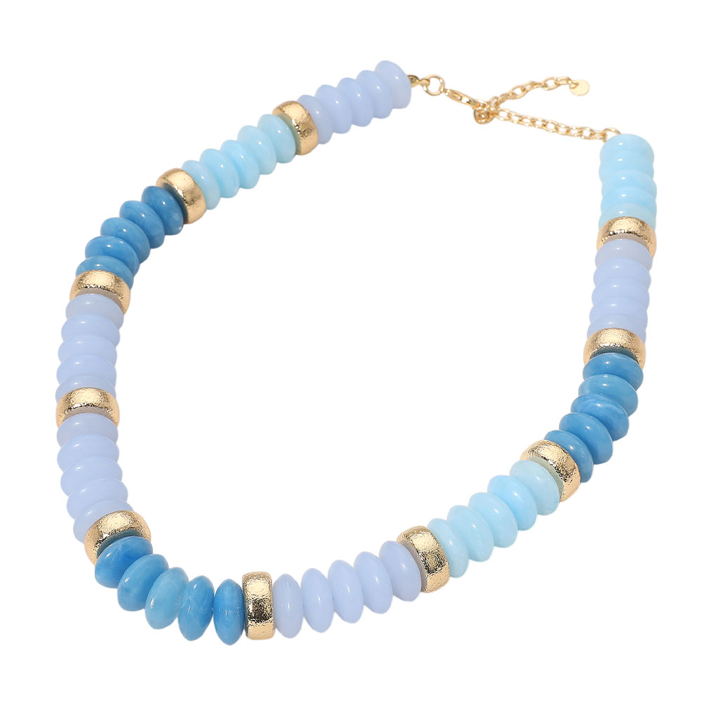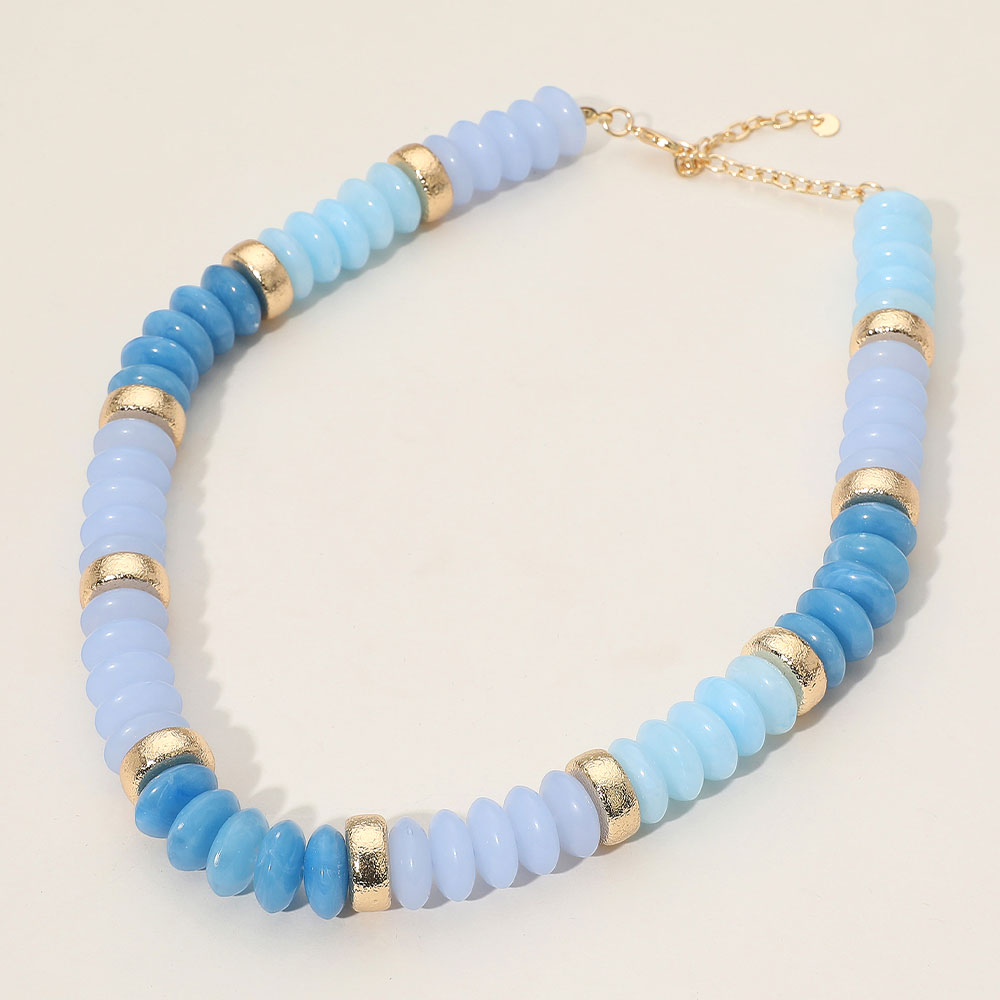 Details • Necklace Size : 17" + 3" L • Decor Size : 0.6" L • Bold and contemporary, this chunky beaded necklace features smooth disc-shaped beads with metallic gold-tone spacers. A versatile statement piece that elevates any outfit with its sleek, modern design. • Lead and Nickel Compliant