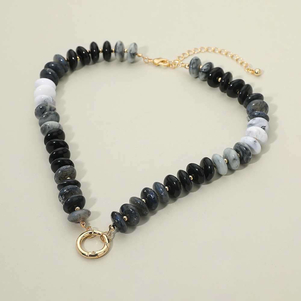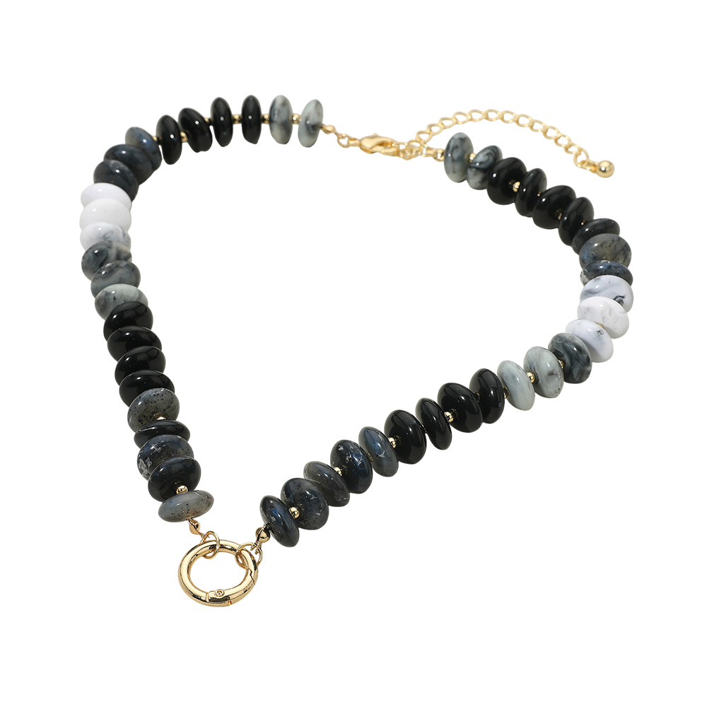 Details • Necklace Size : 18" + 4" L • Decor Size : 0.75" L • Make a bold yet refined statement with this elegant beaded necklace featuring polished round accents and a sleek clasp. Perfect for elevating casual or dressy looks, this piece adds a modern touch of artistry and sophistication to any jewelry collection. • Lead and Nickel Compliant