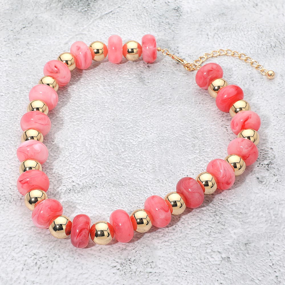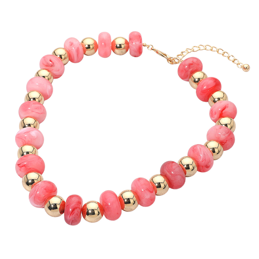Chunky Resin Disc Metal Ball Beaded Statement Necklace