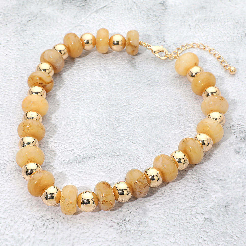 Chunky Resin Disc Metal Ball Beaded Statement Necklace
