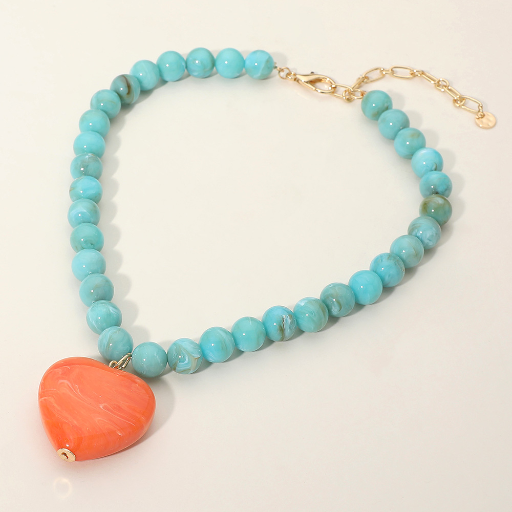 Chunky Resin Heart Pendant Beaded Statement Necklace Chunky Resin Heart Pendant Beaded Statement Necklace Chunky Resin Heart Pendant Beaded Statement Necklace