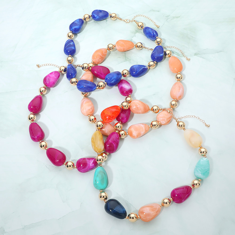 Chunky Resin Marbled Pebble Beaded Necklace Chunky Resin Marbled Pebble Beaded Necklace Chunky Resin Marbled Pebble Beaded Necklace