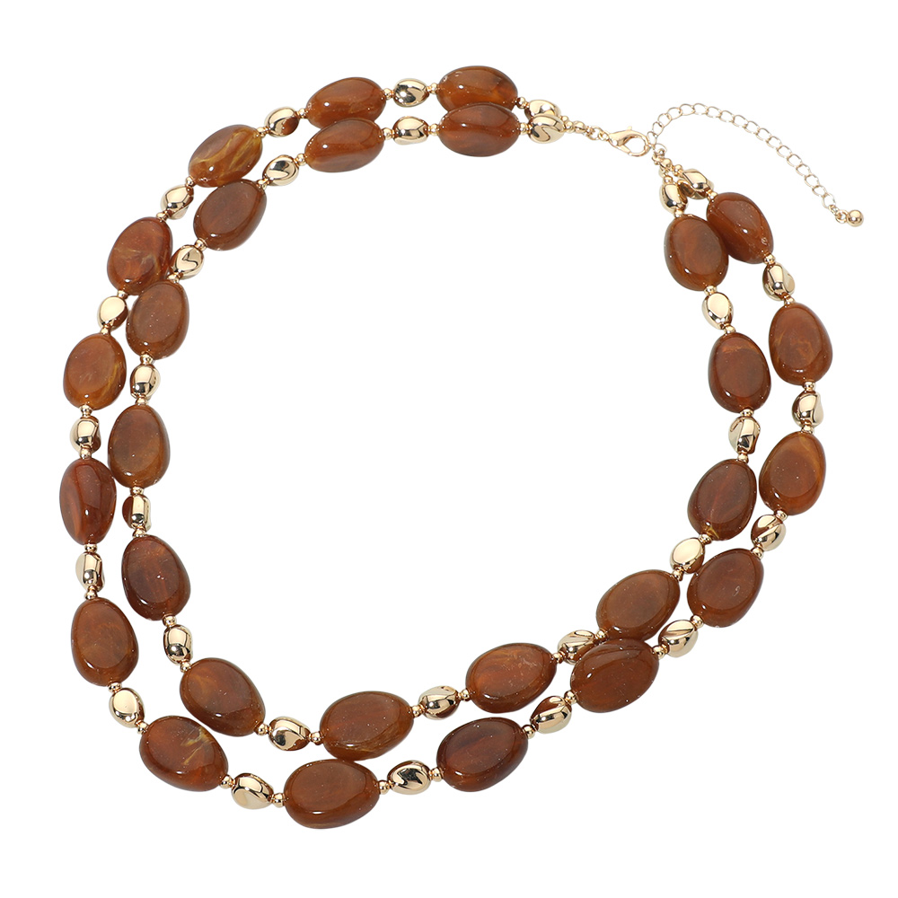 Chunky Resin Oval Marbled Pebble Beaded Layered Necklace Chunky Resin Oval Marbled Pebble Beaded Layered Necklace