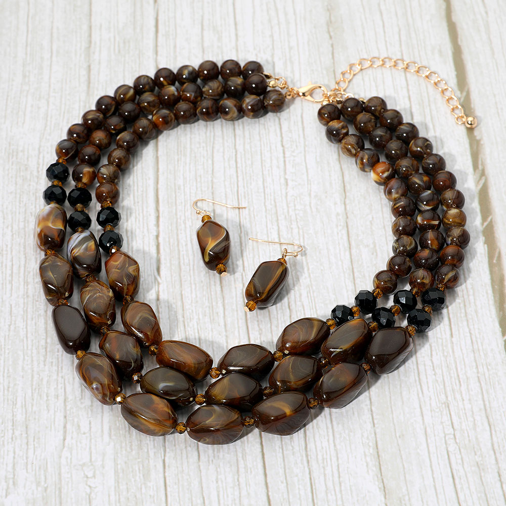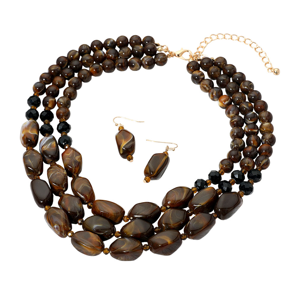 Chunky Resin Pebble Beaded Triple Layered Statement Necklace