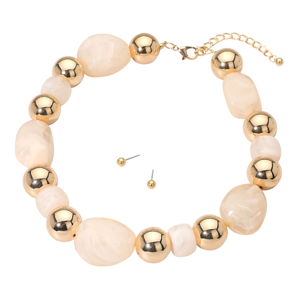 Chunky Resin Pebble Metal Ball Beaded Statement Necklace Chunky Resin Pebble Metal Ball Beaded Statement Necklace