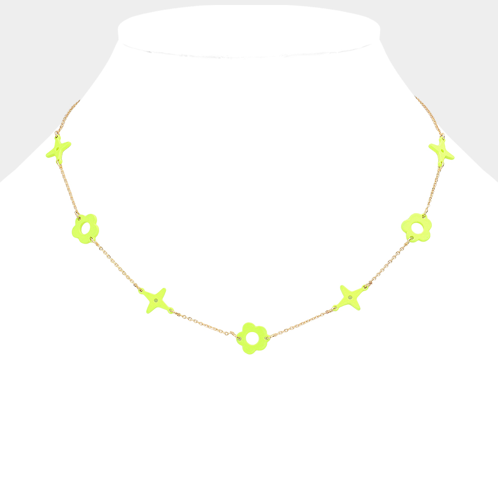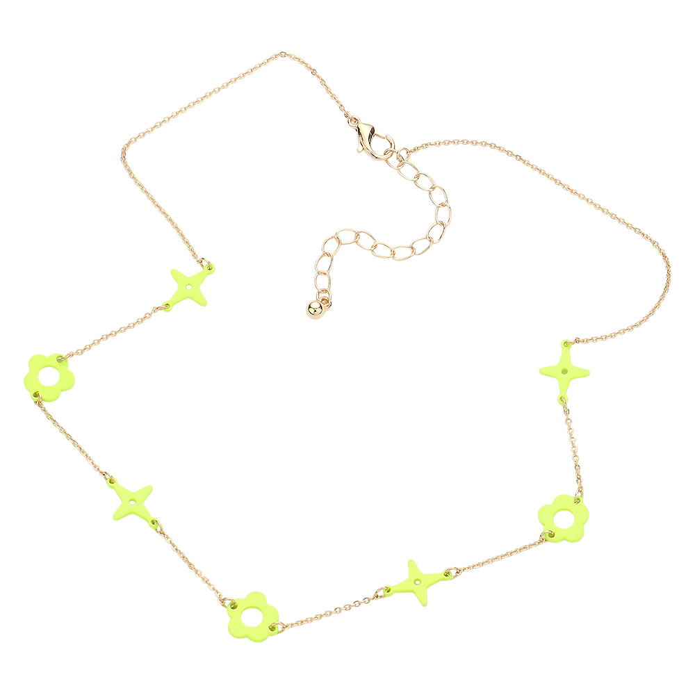 Open Metal Circle Pendant Double Layered Chain Necklace