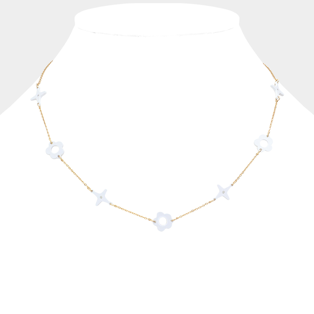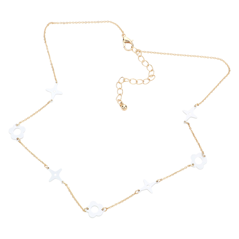 18K Gold Dipped Floral Ceramic Ball Pearl Beaded Necklace