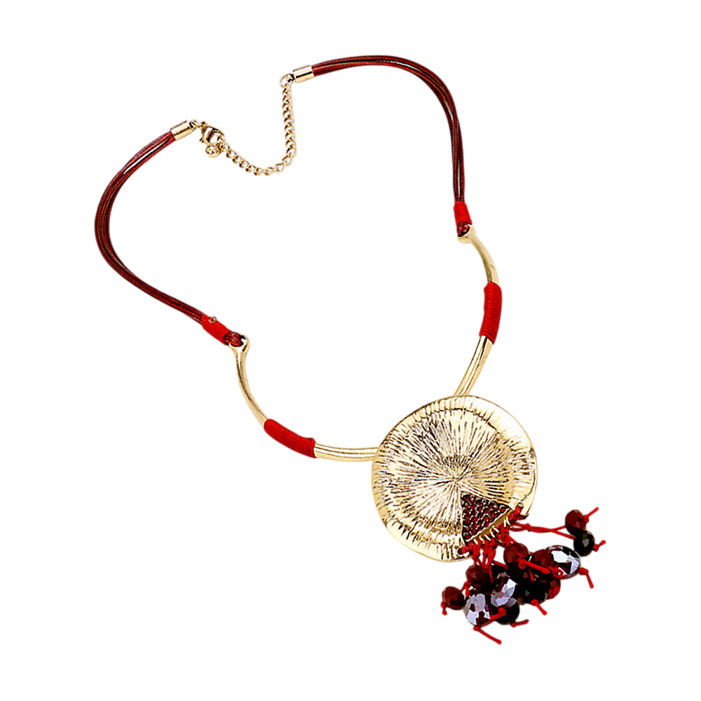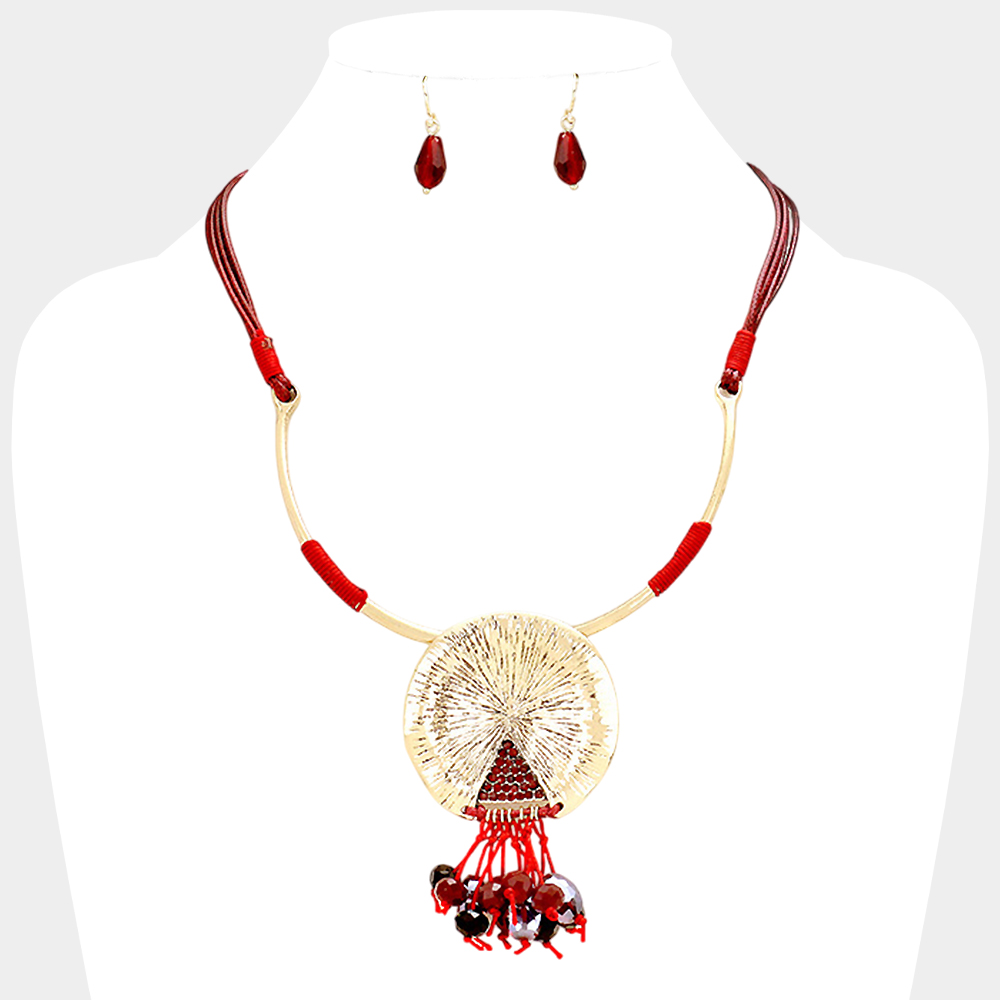 Cord Metal Round Drop Multi Bead Fringe Necklace