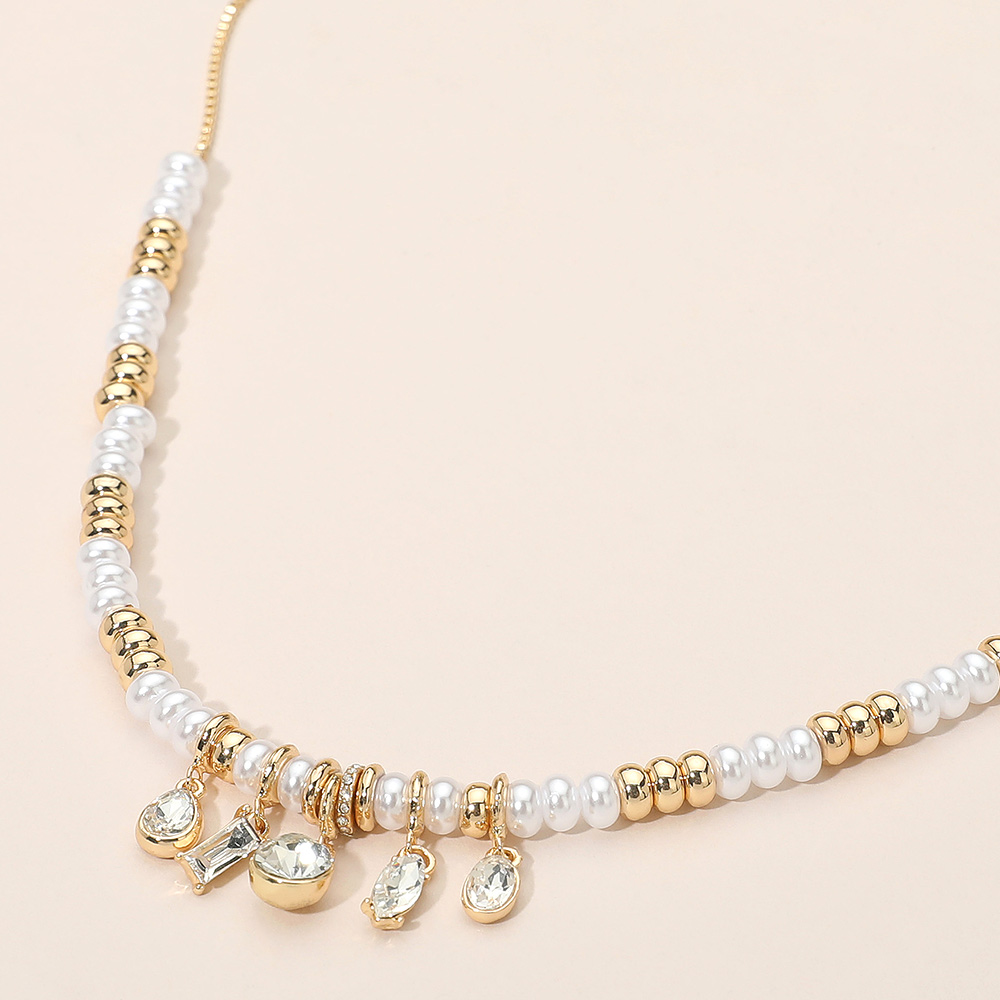 Details • Necklace Size : 16.5" + 3.25" L • Decor Size : 0.75" L • Elevate your style with this elegant necklace featuring a blend of lustrous pearls, polished beads, and sparkling crystal charms. Perfect for both casual and formal occasions, it adds timeless sophistication and a touch of glamour to any outfit. • Lead and Nickel Compliant