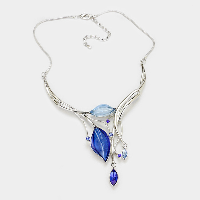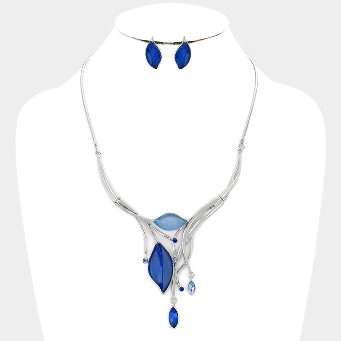 Crystal detail Enamel leaf necklace