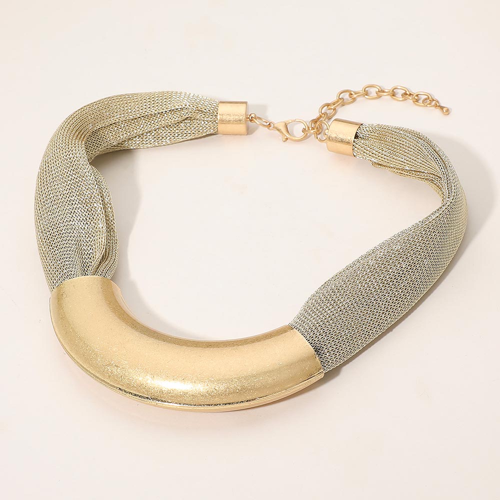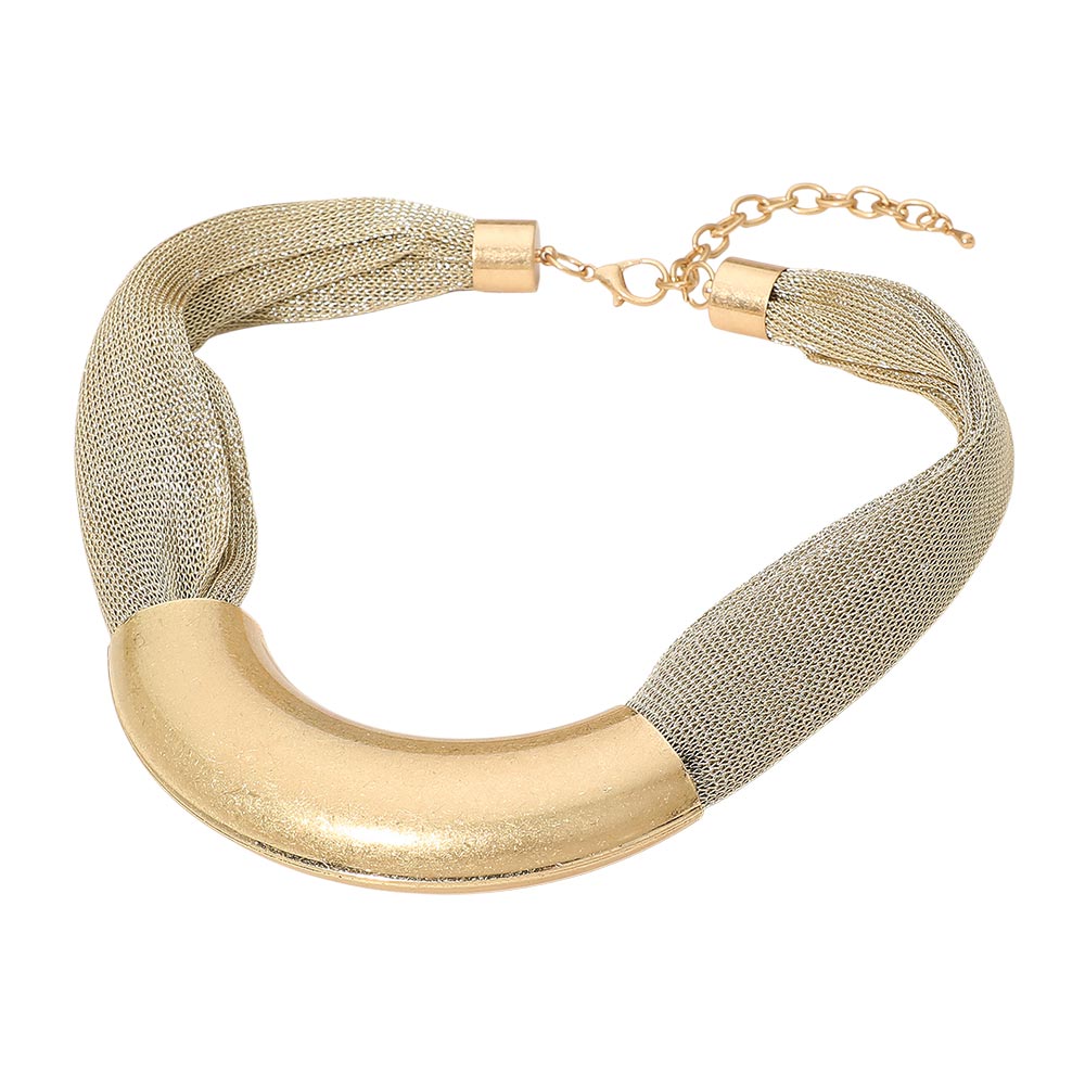 Curved Metal Plated Accent Mesh Chain Statement Necklace Curved Metal Plated Accent Mesh Chain Statement Necklace Curved Metal Plated Accent Mesh Chain Statement Necklace