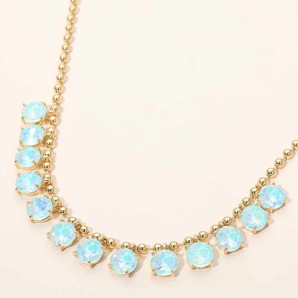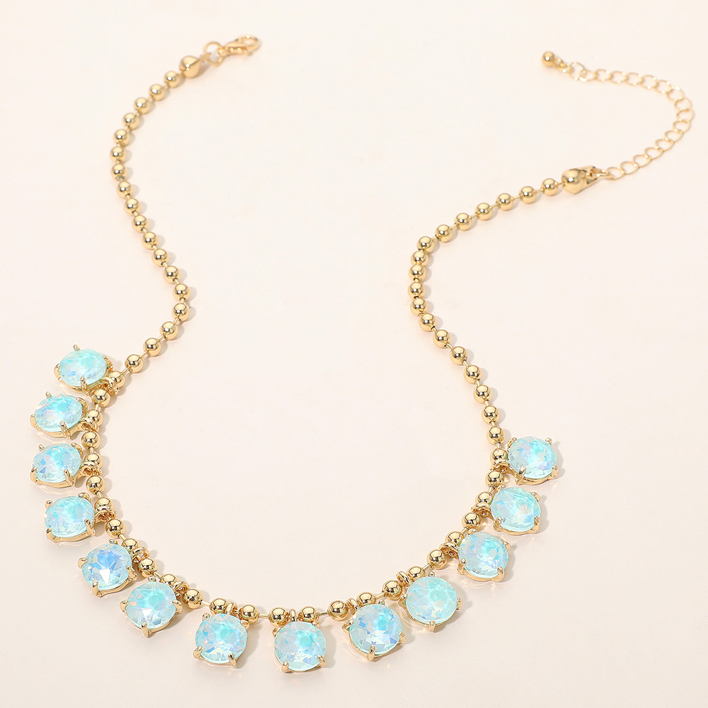 • Elegant necklace featuring a delicate beaded chain accented with faceted round stones arranged along the neckline. Designed to add refined sparkle and balanced detail, this versatile piece suits everyday wear, special occasions, gifting, and boutique collections with a timeless, polished appeal.