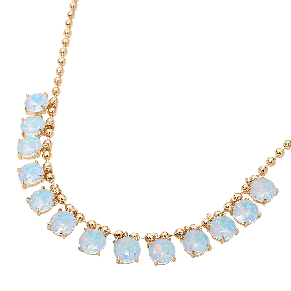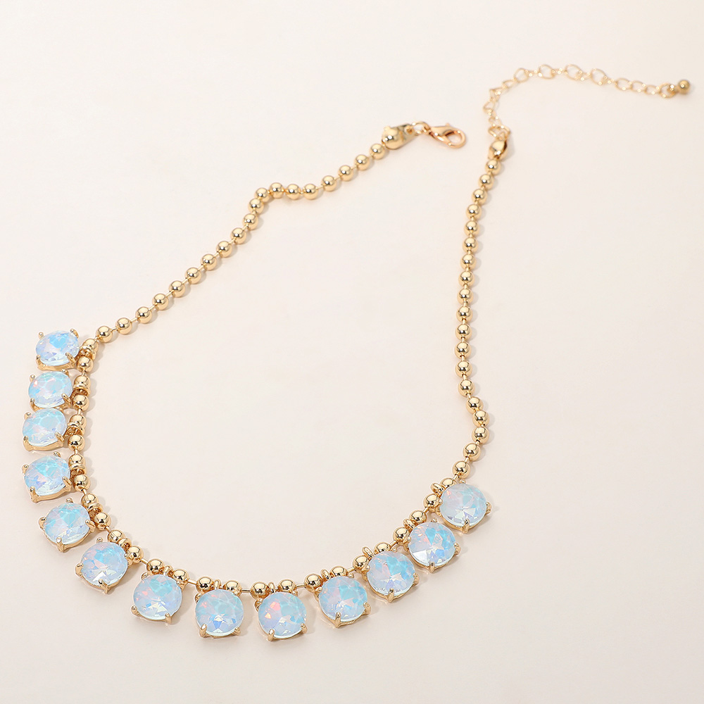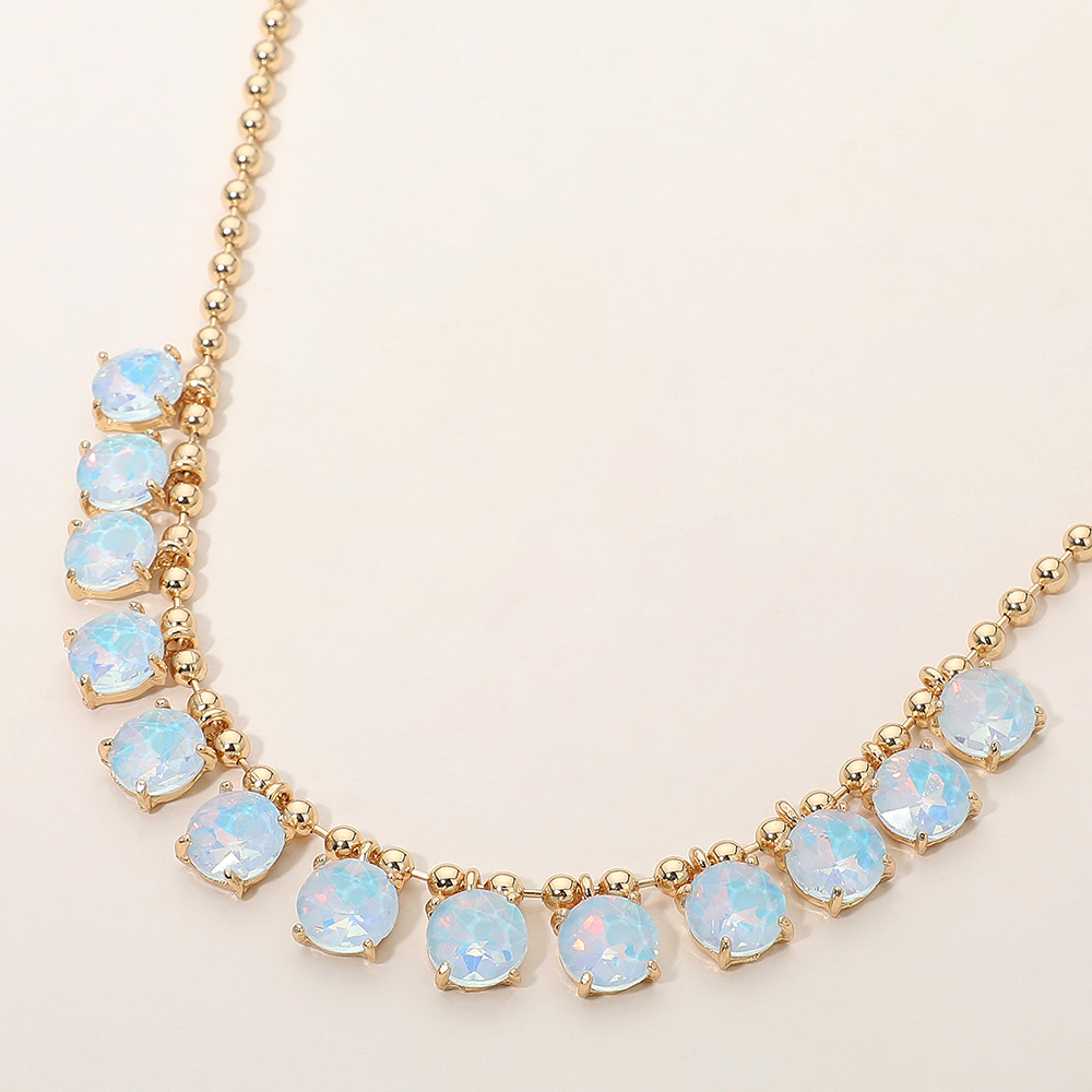 • Elegant necklace featuring a delicate beaded chain accented with faceted round stones arranged along the neckline. Designed to add refined sparkle and balanced detail, this versatile piece suits everyday wear, special occasions, gifting, and boutique collections with a timeless, polished appeal.