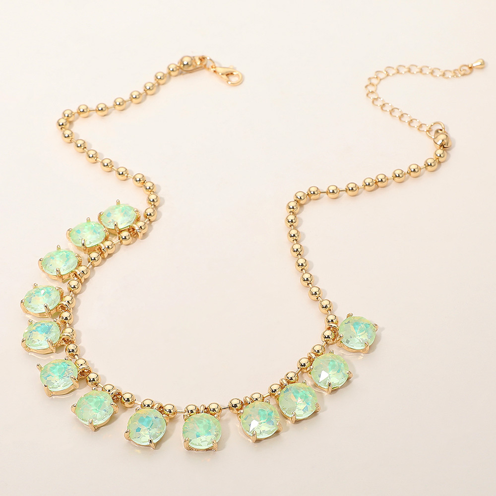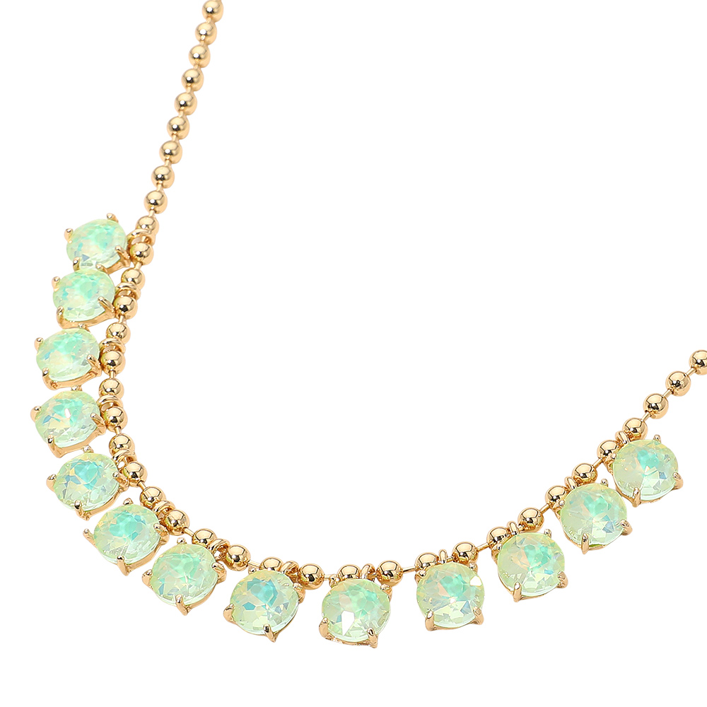• Elegant necklace featuring a delicate beaded chain accented with faceted round stones arranged along the neckline. Designed to add refined sparkle and balanced detail, this versatile piece suits everyday wear, special occasions, gifting, and boutique collections with a timeless, polished appeal.