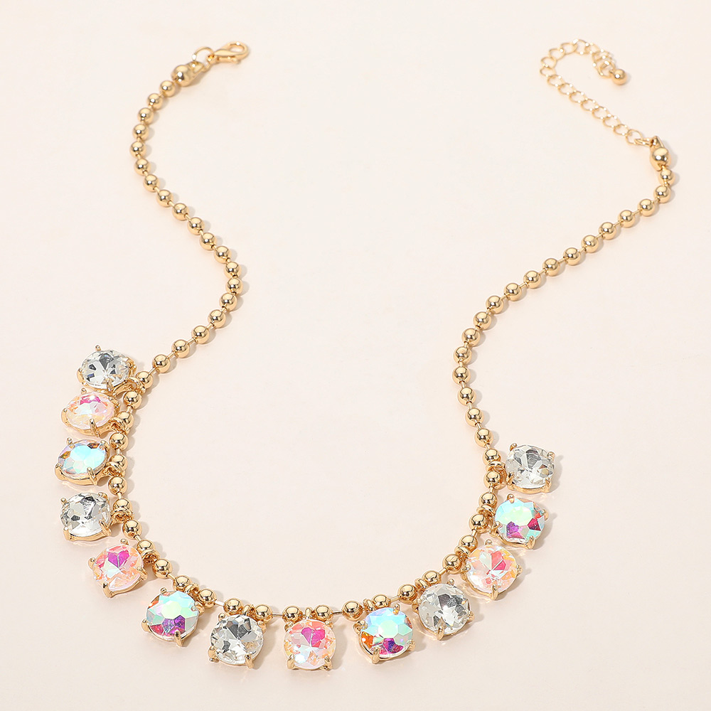 • Elegant necklace featuring a delicate beaded chain accented with faceted round stones arranged along the neckline. Designed to add refined sparkle and balanced detail, this versatile piece suits everyday wear, special occasions, gifting, and boutique collections with a timeless, polished appeal.