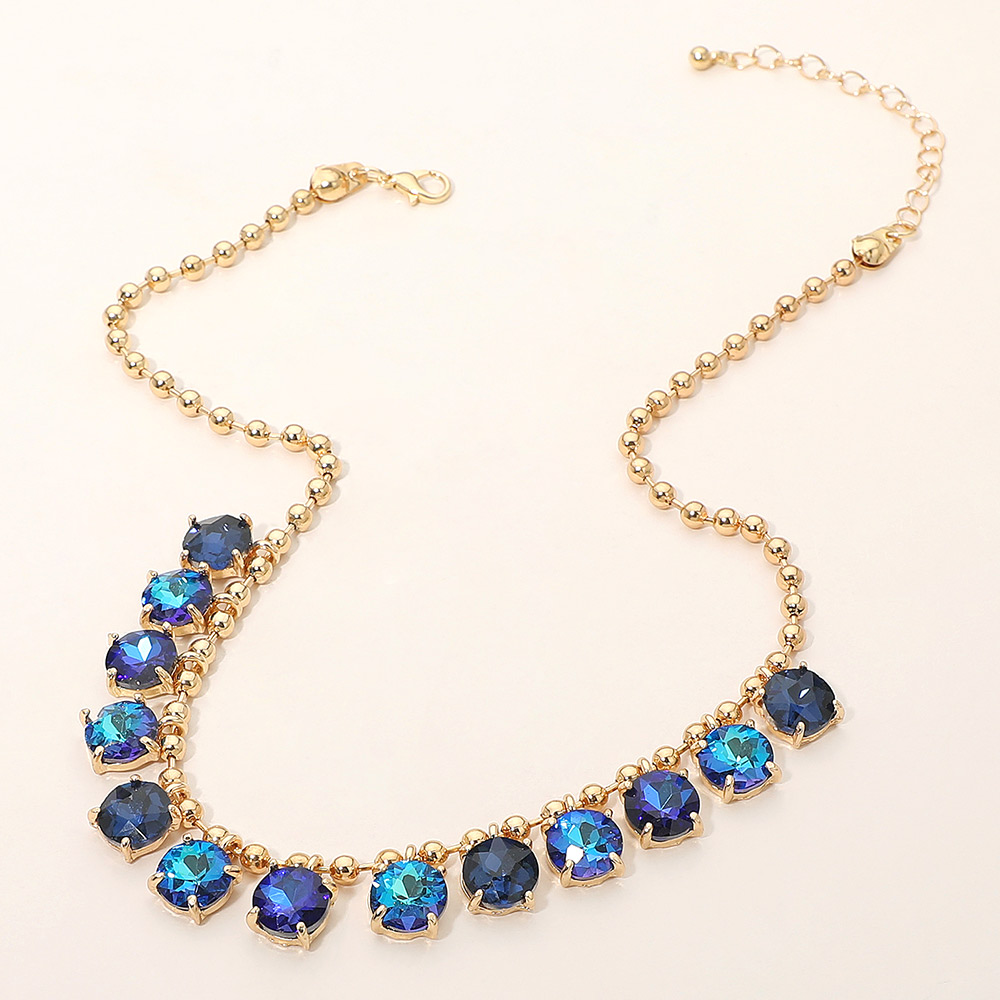 • Elegant necklace featuring a delicate beaded chain accented with faceted round stones arranged along the neckline. Designed to add refined sparkle and balanced detail, this versatile piece suits everyday wear, special occasions, gifting, and boutique collections with a timeless, polished appeal.