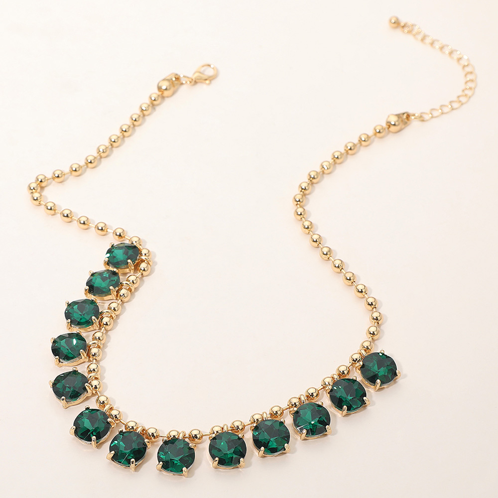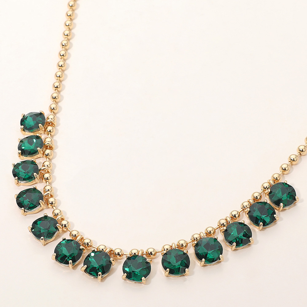 • Elegant necklace featuring a delicate beaded chain accented with faceted round stones arranged along the neckline. Designed to add refined sparkle and balanced detail, this versatile piece suits everyday wear, special occasions, gifting, and boutique collections with a timeless, polished appeal.