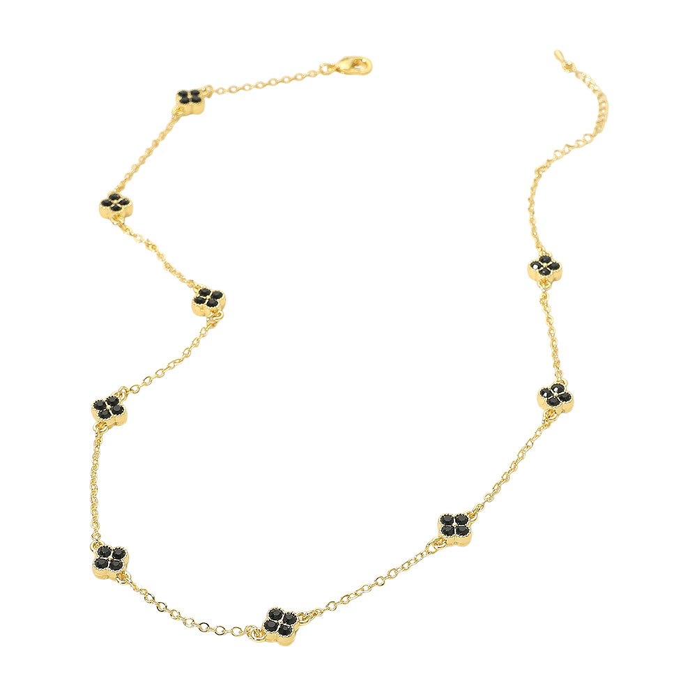 CZ Quatrefoil Charm Station Necklace CZ Quatrefoil Charm Station Necklace CZ Quatrefoil Charm Station Necklace