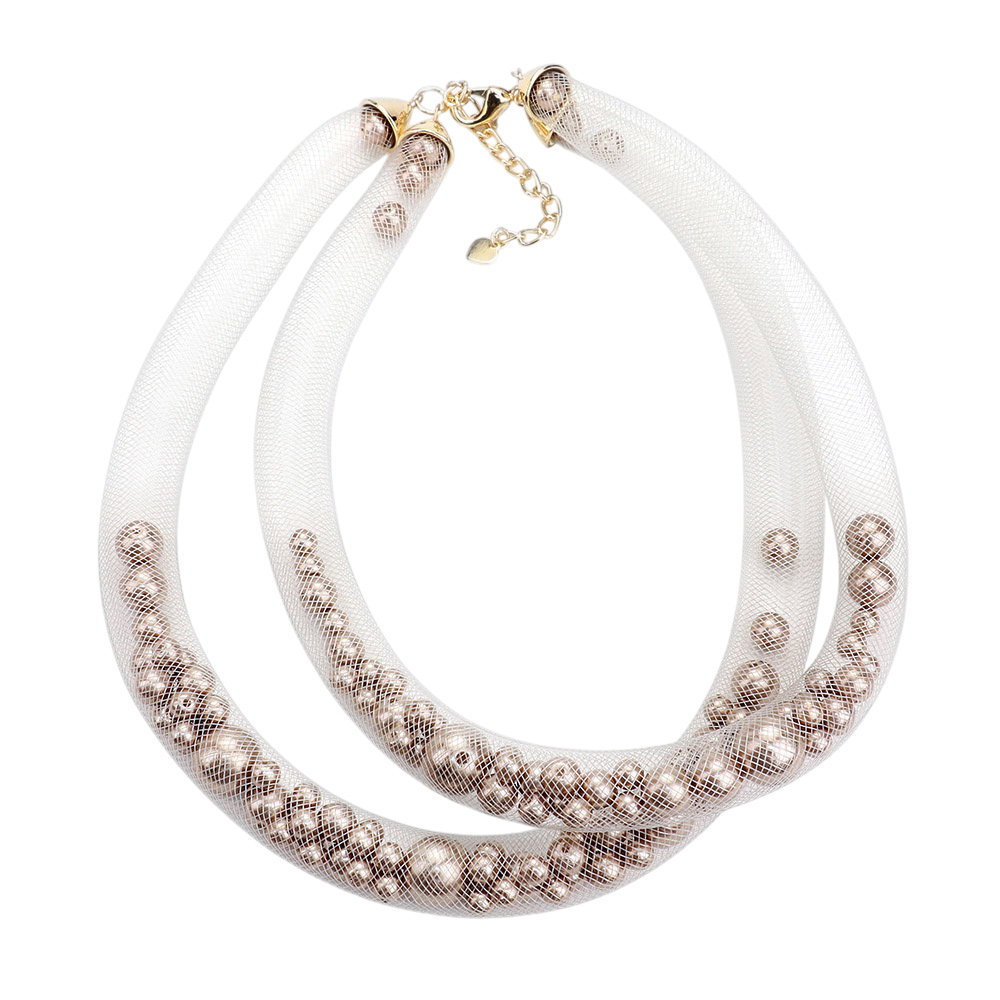 Double Mesh Tube Pearl Collar Necklace