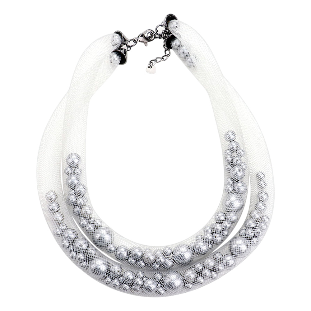 Double Mesh Tube Pearl Collar Necklace