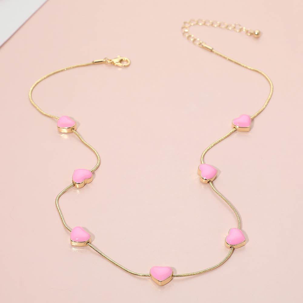 Enamel Heart Charm Station Necklace Enamel Heart Charm Station Necklace Enamel Heart Charm Station Necklace