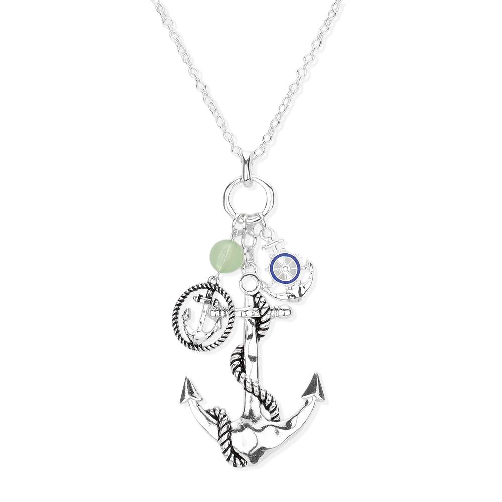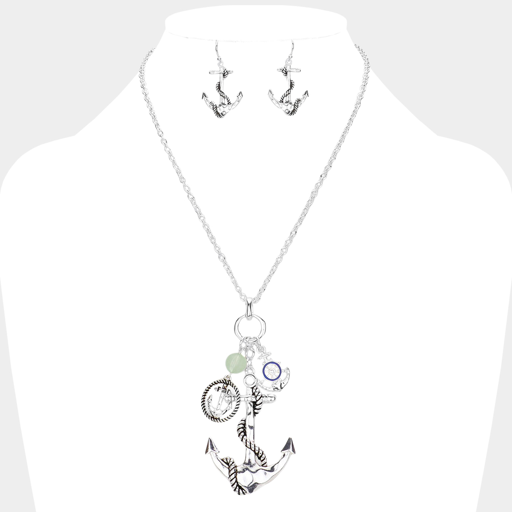 Enamel Ship Heel Detailed Metal Anchor Pendant Necklace
