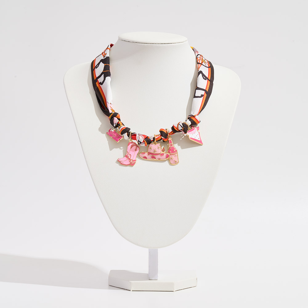 Enamel Western Theme Charm Station Fabric Scarf Necklace / Adjustable Bracelet / Bag Charm