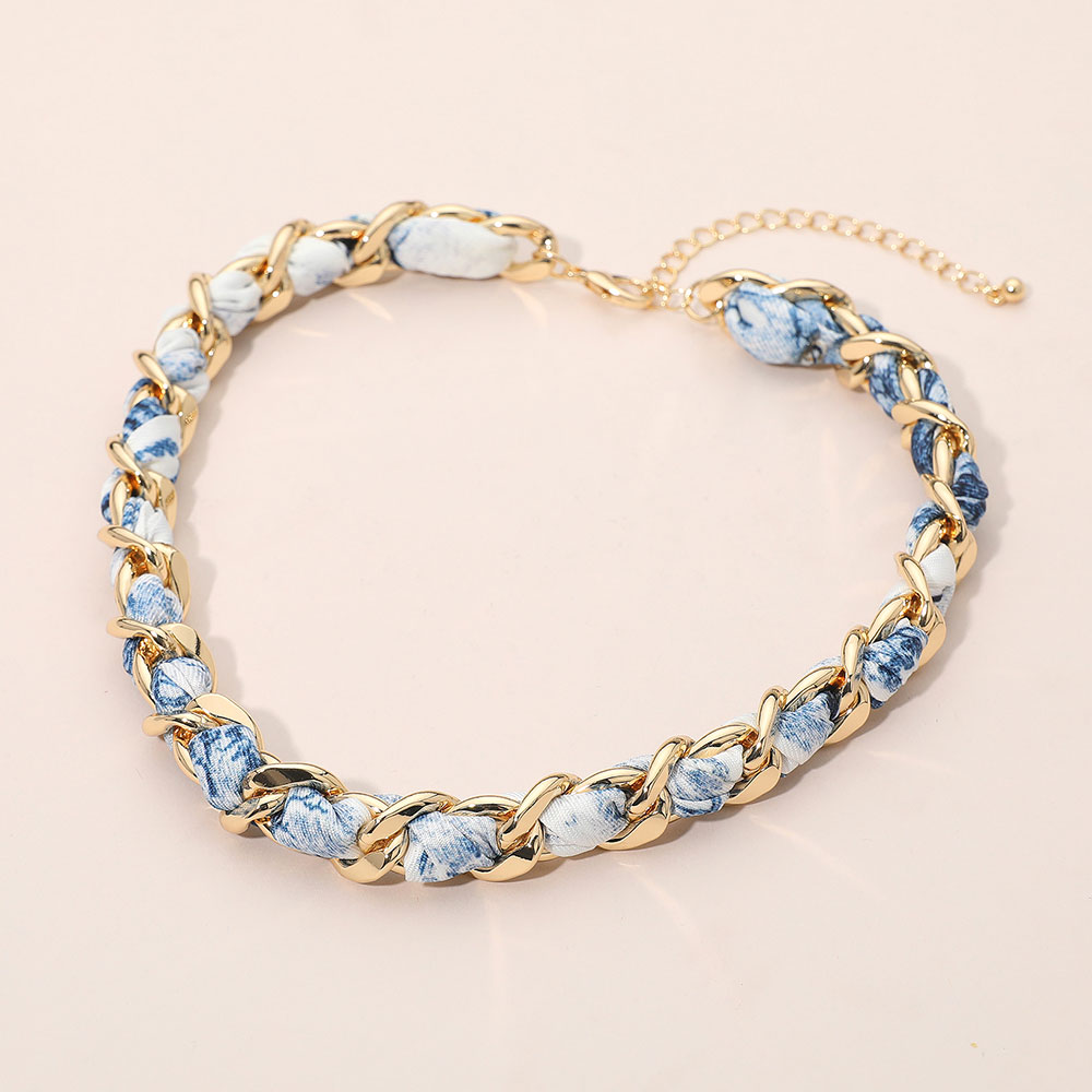 • This stylish chain link necklace features an interwoven fabric design for a chic and modern twist on a classic look. With its adjustable clasp, it offers both comfort and versatility, making it an ideal accessory to elevate casual outfits or complement elegant attire.