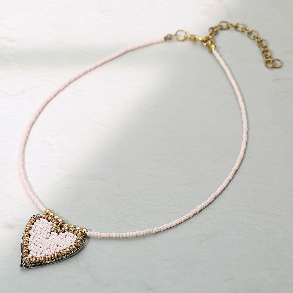 Details • Necklace Size : 14" + 3" L • Pendant Size : 1" X 1" • Charming necklace featuring a hand-beaded heart pendant on a delicate beaded chain. Perfect for adding a romantic touch to casual or layered looks. Lightweight, feminine, and versatile, this necklace brings a subtle boho elegance to your everyday accessory collection. • Lead and Nickel Compliant • Made In India
