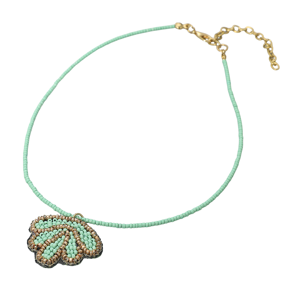 Details • Necklace Size : 14" + 3" L • Pendant Size : 1.3" X 1" • Elegant necklace featuring a handcrafted beaded leaf pendant on a fine beaded chain. Adds a touch of bohemian charm and natural elegance to casual or dressy looks. Lightweight and stylish, this piece is perfect for layering or wearing as a statement accent. • Lead and Nickel Compliant • Made In India