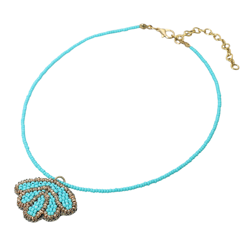 Details • Necklace Size : 14" + 3" L • Pendant Size : 1.3" X 1" • Elegant necklace featuring a handcrafted beaded leaf pendant on a fine beaded chain. Adds a touch of bohemian charm and natural elegance to casual or dressy looks. Lightweight and stylish, this piece is perfect for layering or wearing as a statement accent. • Lead and Nickel Compliant • Made In India