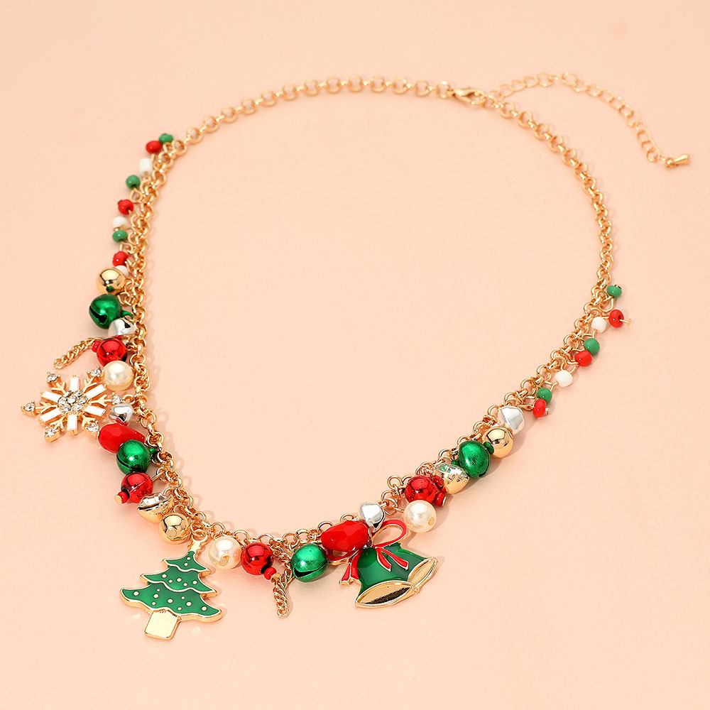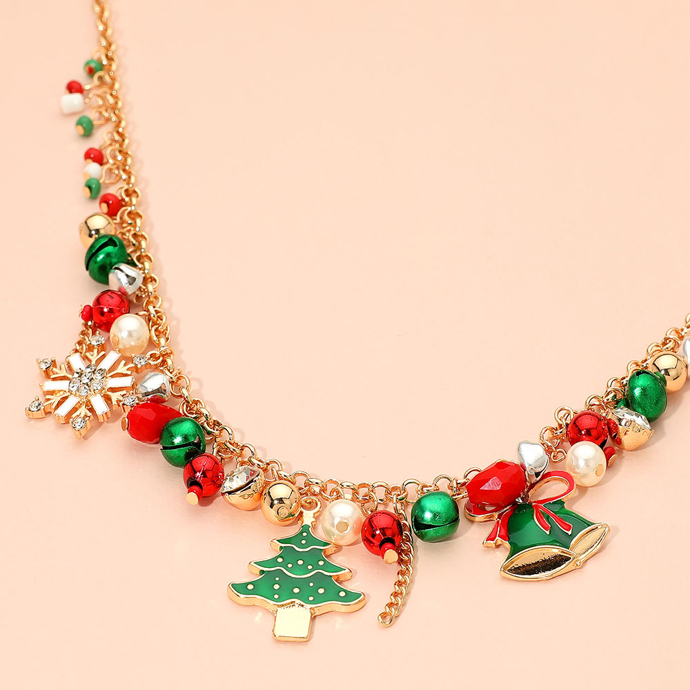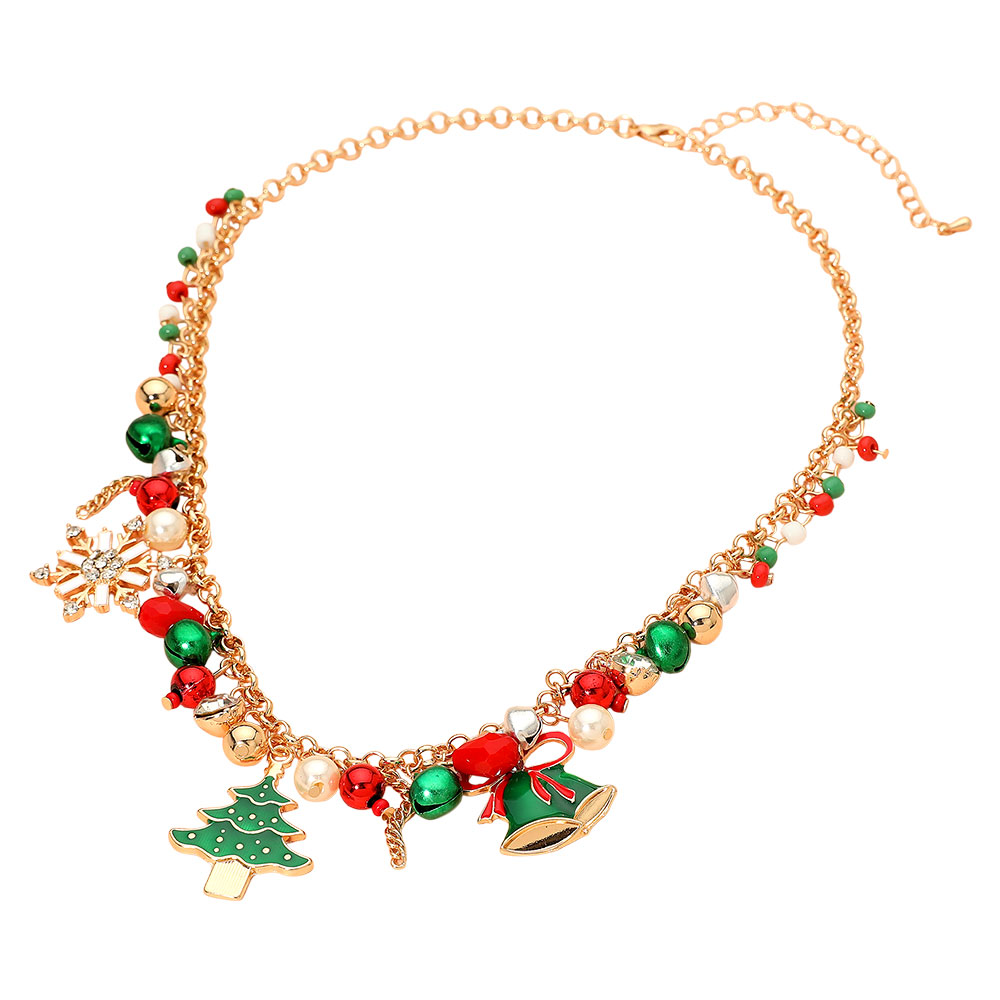 Details • Necklace Size : 18" + 3" L • Decor Size : 1.5" L • Celebrate the holiday spirit with this festive Christmas charm necklace. Adorned with cheerful charms like snowflakes, trees, and bells, it captures the joy of the season and adds a playful sparkle to your winter wardrobe or party look. • Lead and Nickel Compliant