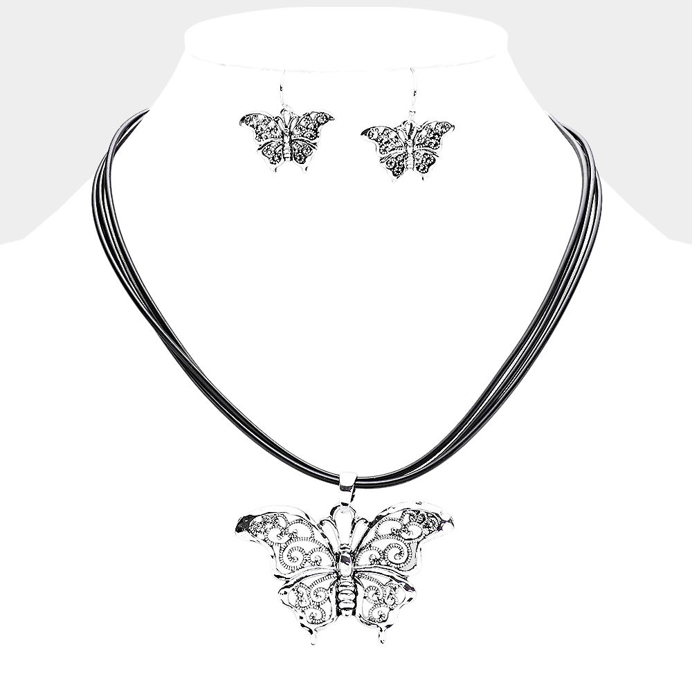 SECRET BOX_14K Gold Dipped Floral Ceramic Ball Pearl Beaded Butterfly Pendant Necklace