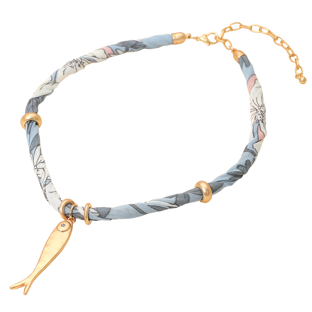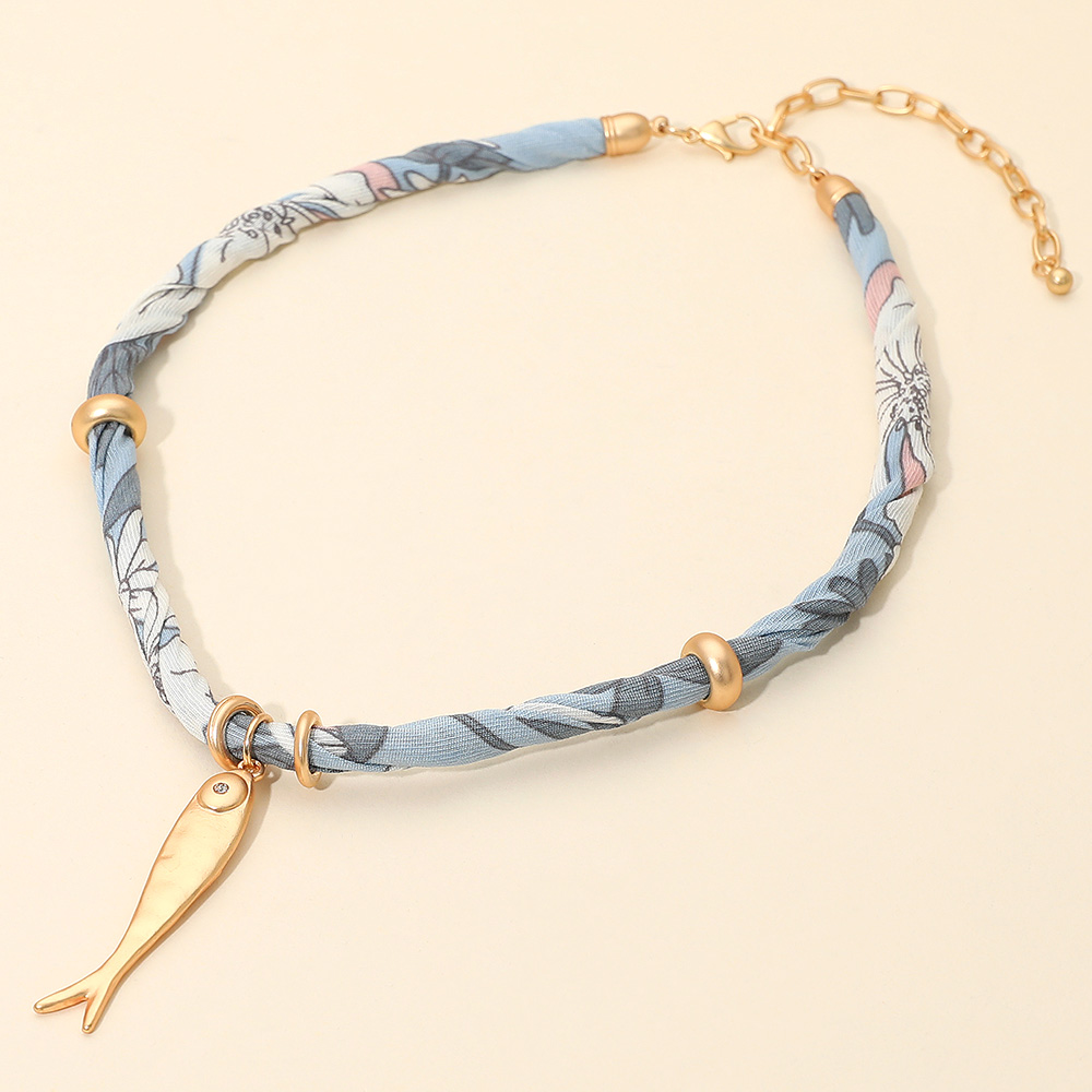 Details • Necklace Size : 14.5" + 3.25" L • Pendant Size : 0.25" X 1.8" • Print may vary • Discover a stylish fabric necklace featuring a sleek fish charm and smooth accent rings for a modern, artistic look. Lightweight and adjustable, it offers effortless versatility, making it a standout accessory for casual outfits or elegant layered styling. Perfect for everyday wear. • Lead and Nickel Compliant