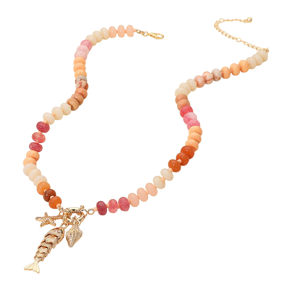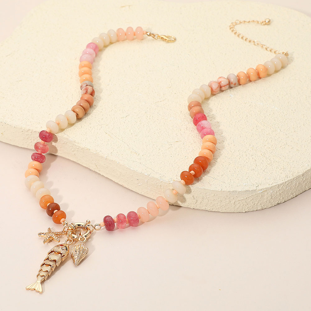 • Add a playful coastal touch to your style with this colorful beaded necklace, adorned with whimsical ocean-inspired charms including a fish, starfish, and seashell. Lightweight and eye-catching, it’s the perfect accessory for layering or making a chic standalone statement.