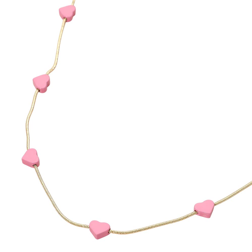 • This heart station necklace features evenly spaced heart accents along a smooth, flexible chain for a balanced and feminine look. Designed for easy layering or standalone wear, it adds charm to everyday outfits, special occasions, and gift assortments, making it a versatile choice for boutique jewelry collections.